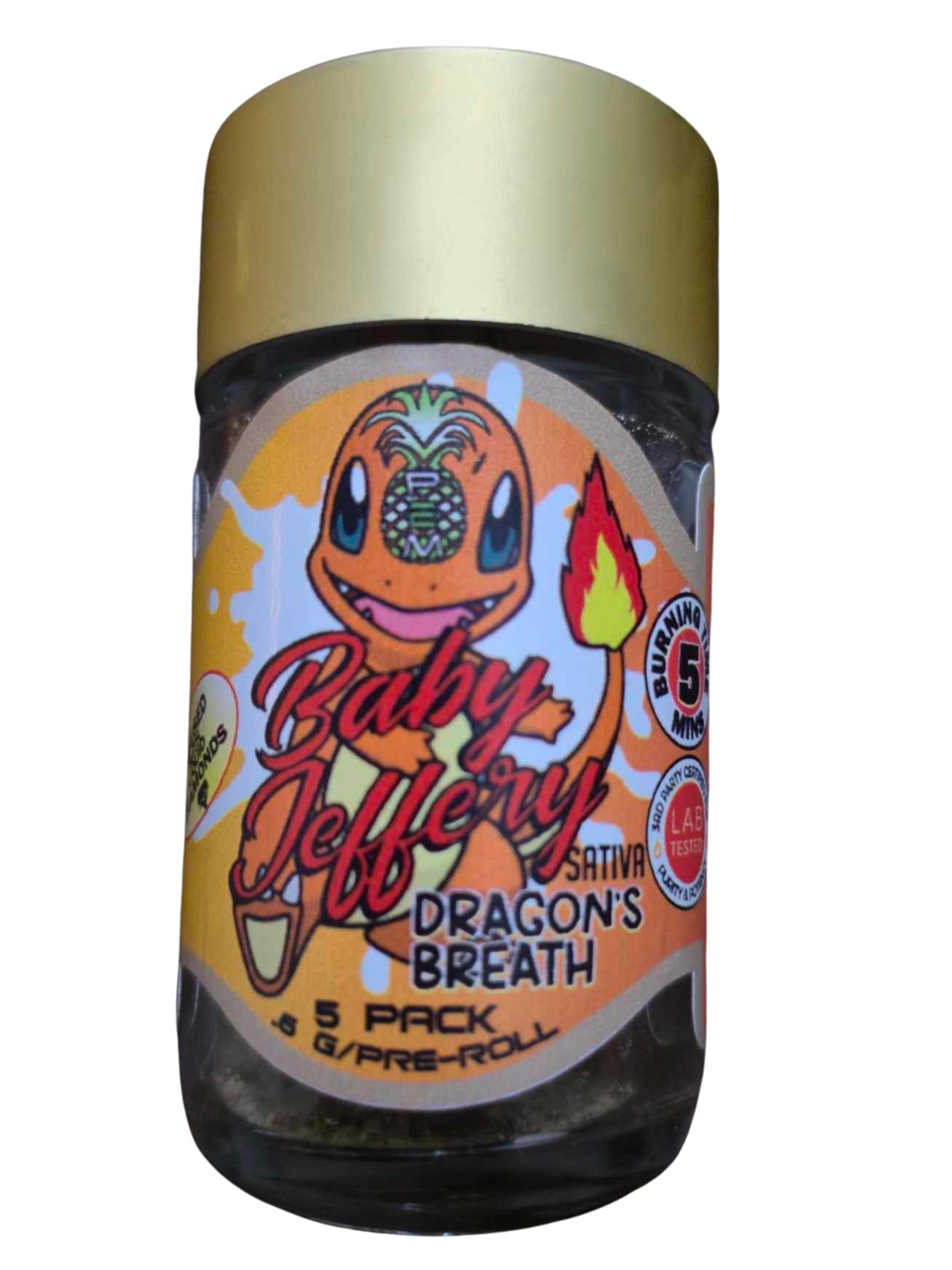 5 baby Jeffery Pre-Roll joints infused with liquid diamonds!