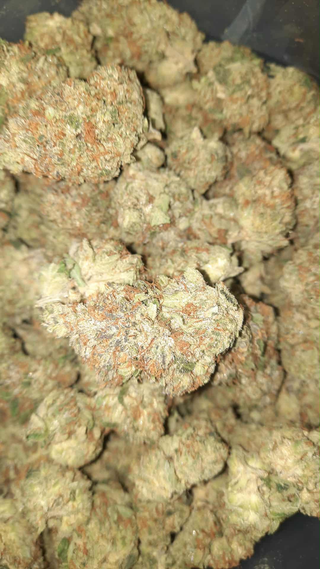Trichomes: Thick, crystal-coated layer of resin that gives the buds a frosty, sticky look