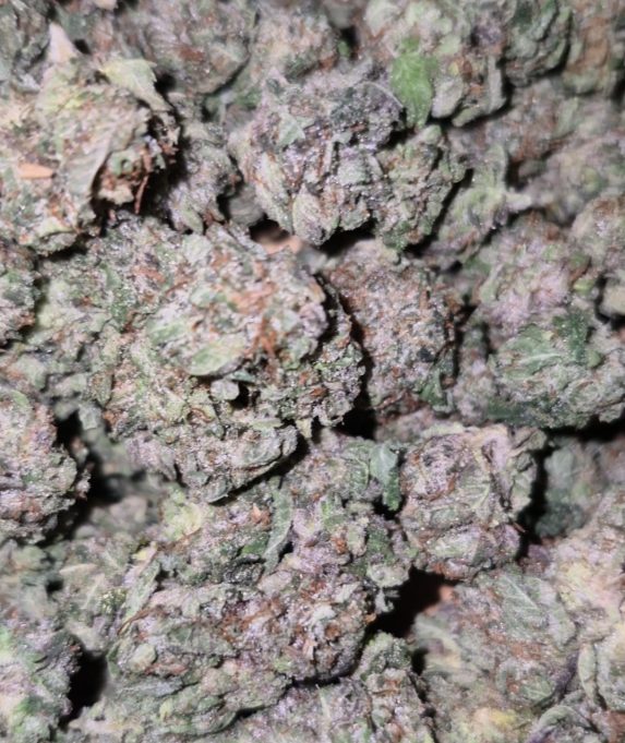 Trichomes: Thick coating of milky-white trichomes giving the buds a greasy, frosted finish